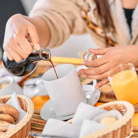 Hosté si mohou vychutnat ranní jídlo v restauraci.